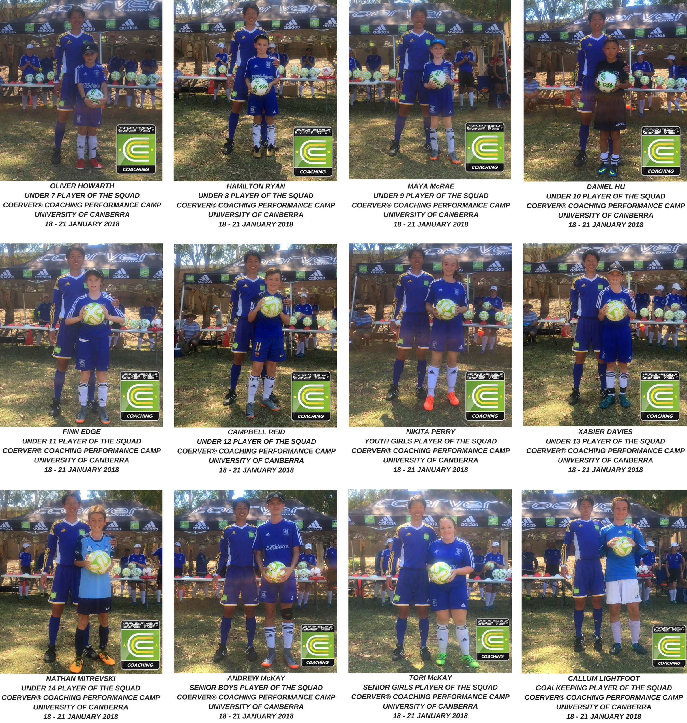 One player in each squad was recognised as the player of the camp for their respective squad, each winner was awarded a Coerver Coaching adidas training ball. The following players were awarded the player of each squad: